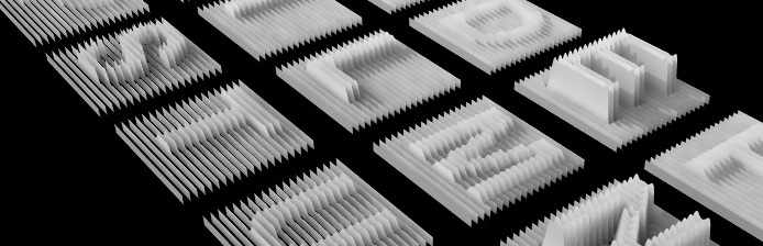 To create the characters in a first step, the average audio volume of pronunciation of each individual letter was determined in Grasshopper. A three dimensional letter-Brep was then created, which is intersected by a grid of curves. After calculating the overlapping parts of the curve, the intersecting points were translated by the aforementioned mean value of sound volume. The deformed curves were then extruded, scaffolded with support struts, and placed on a cutting plan for further proces-sing in a laser cutter or plotter.